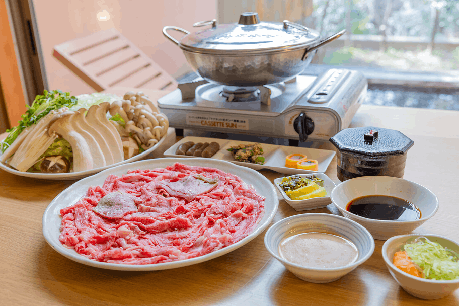 お鍋や食器などのテーブルセッティングはチェックイン前にご用意させていただき、お食事(食材)は夕食のお時間に玄関先までお届けいたします。